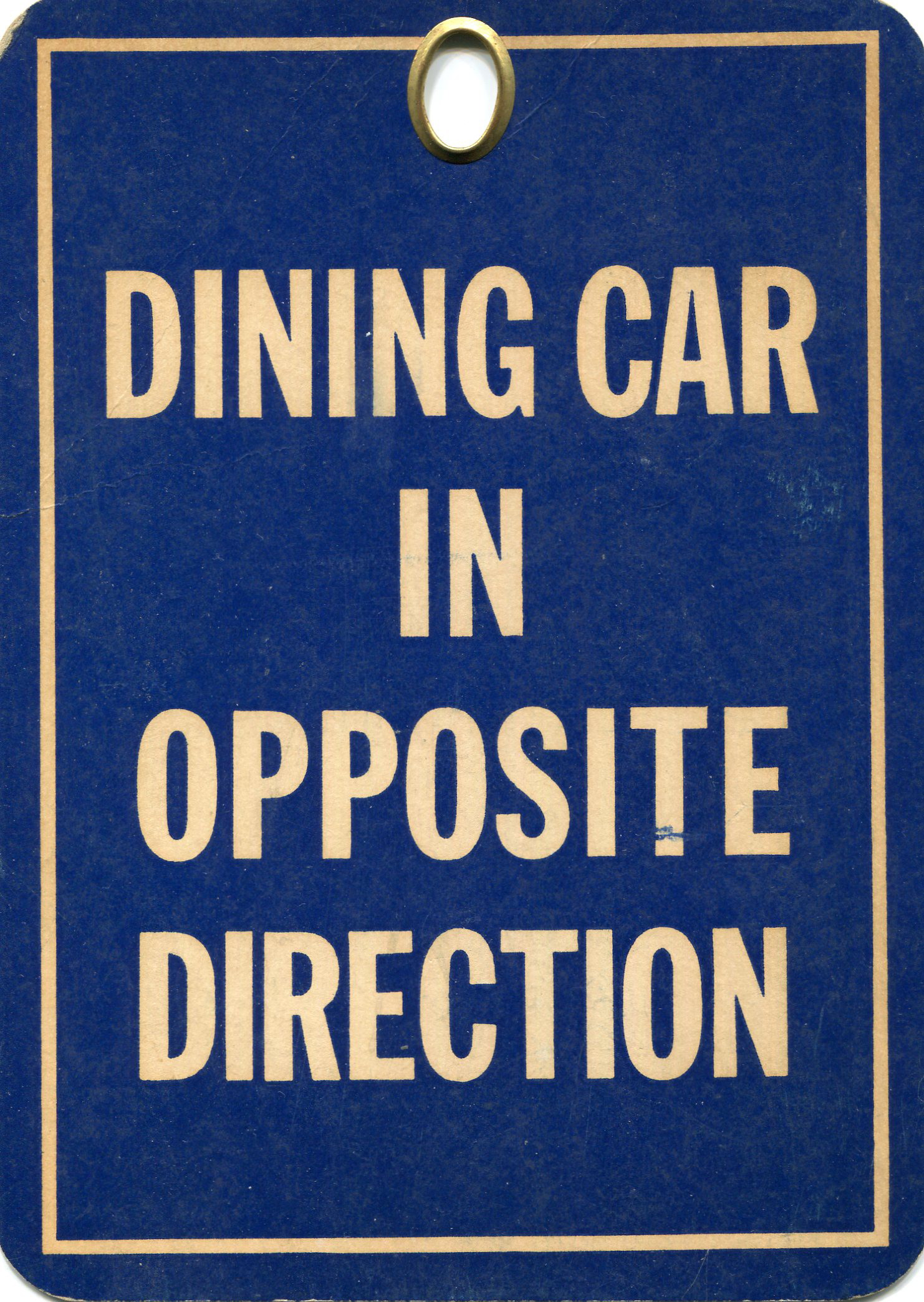 Standard informational card placed throughout the train to best direct passengers to the dining car. Same card was utilized by several railroads. This one "borrowed" from City of LA in 1960's.