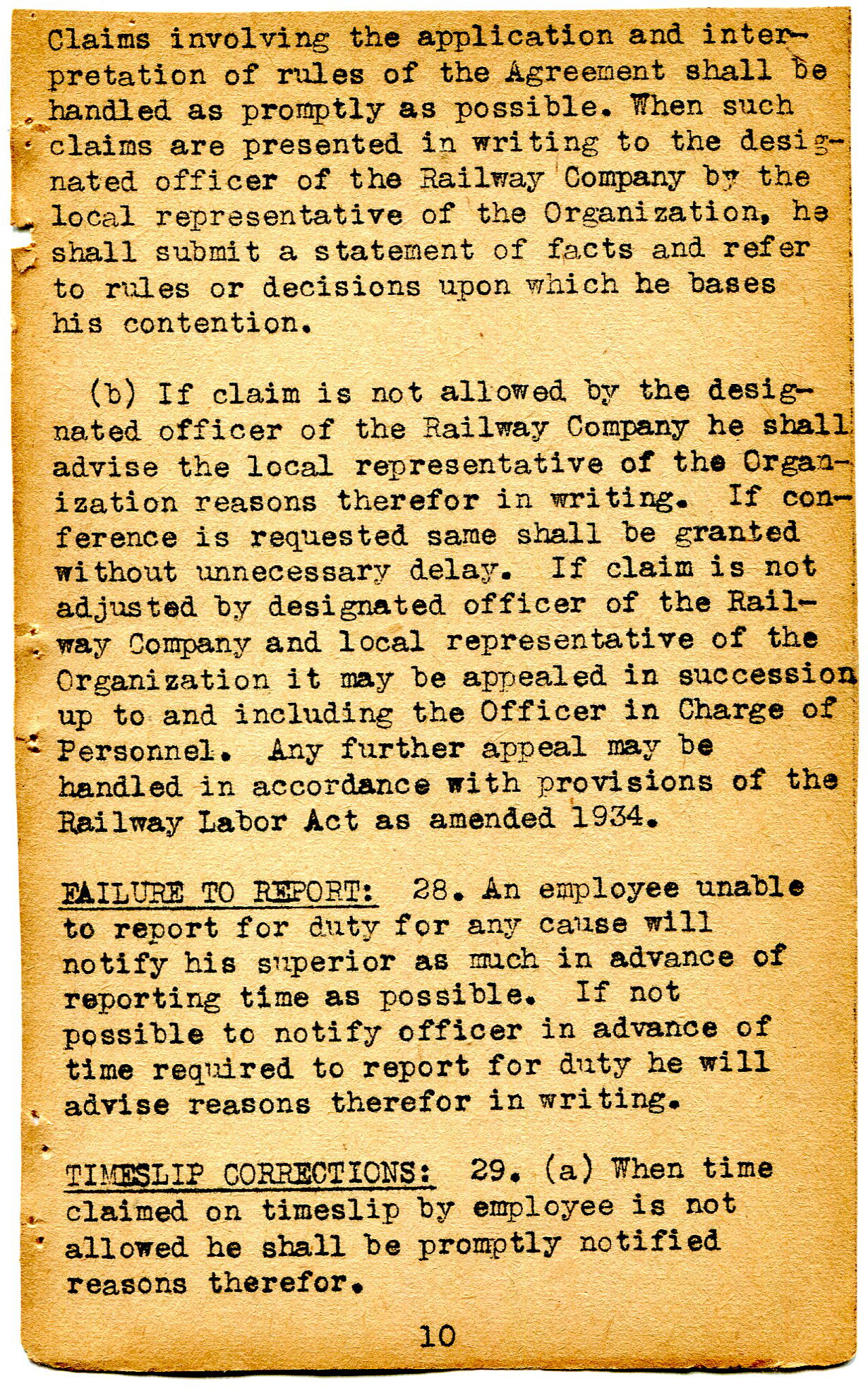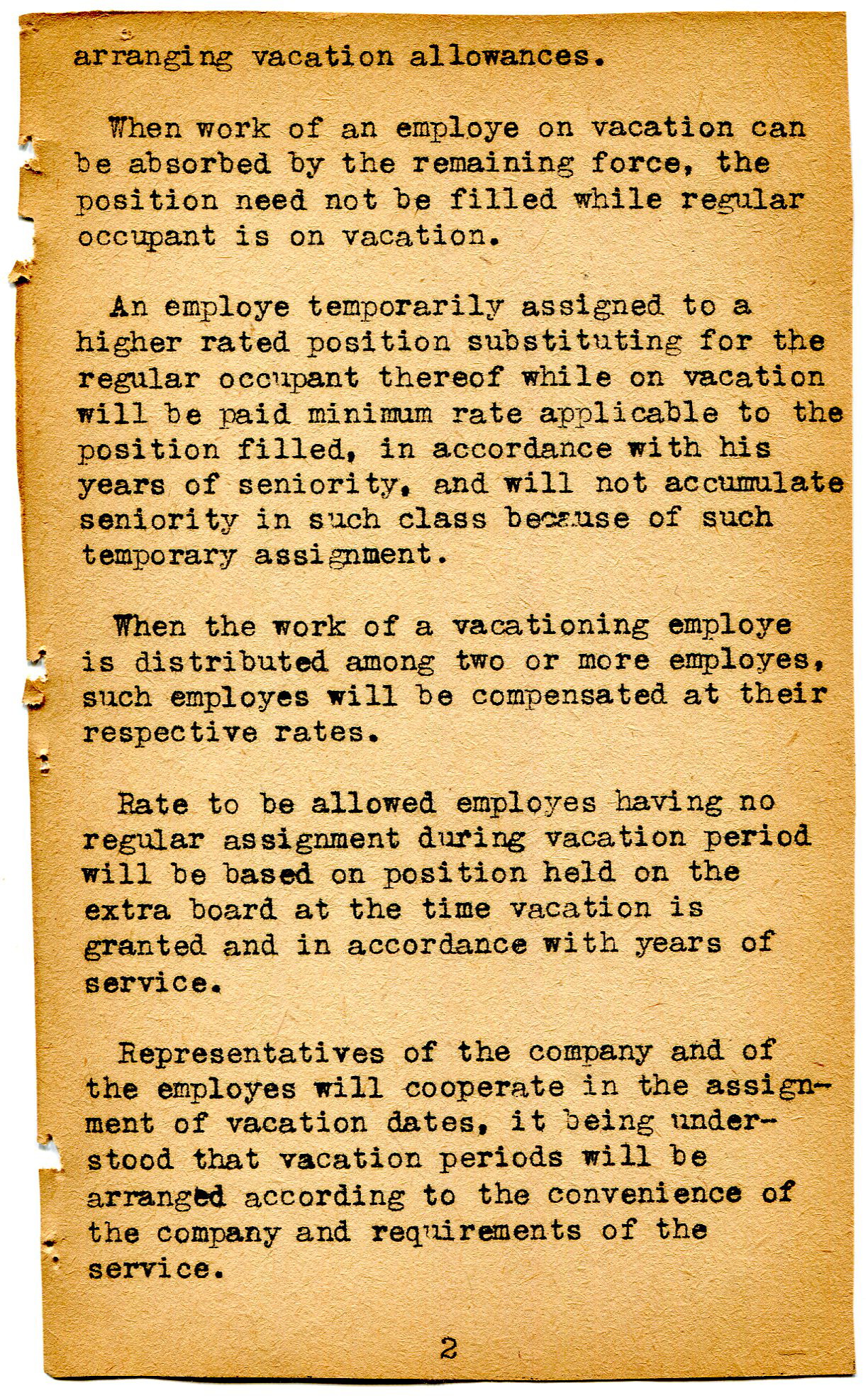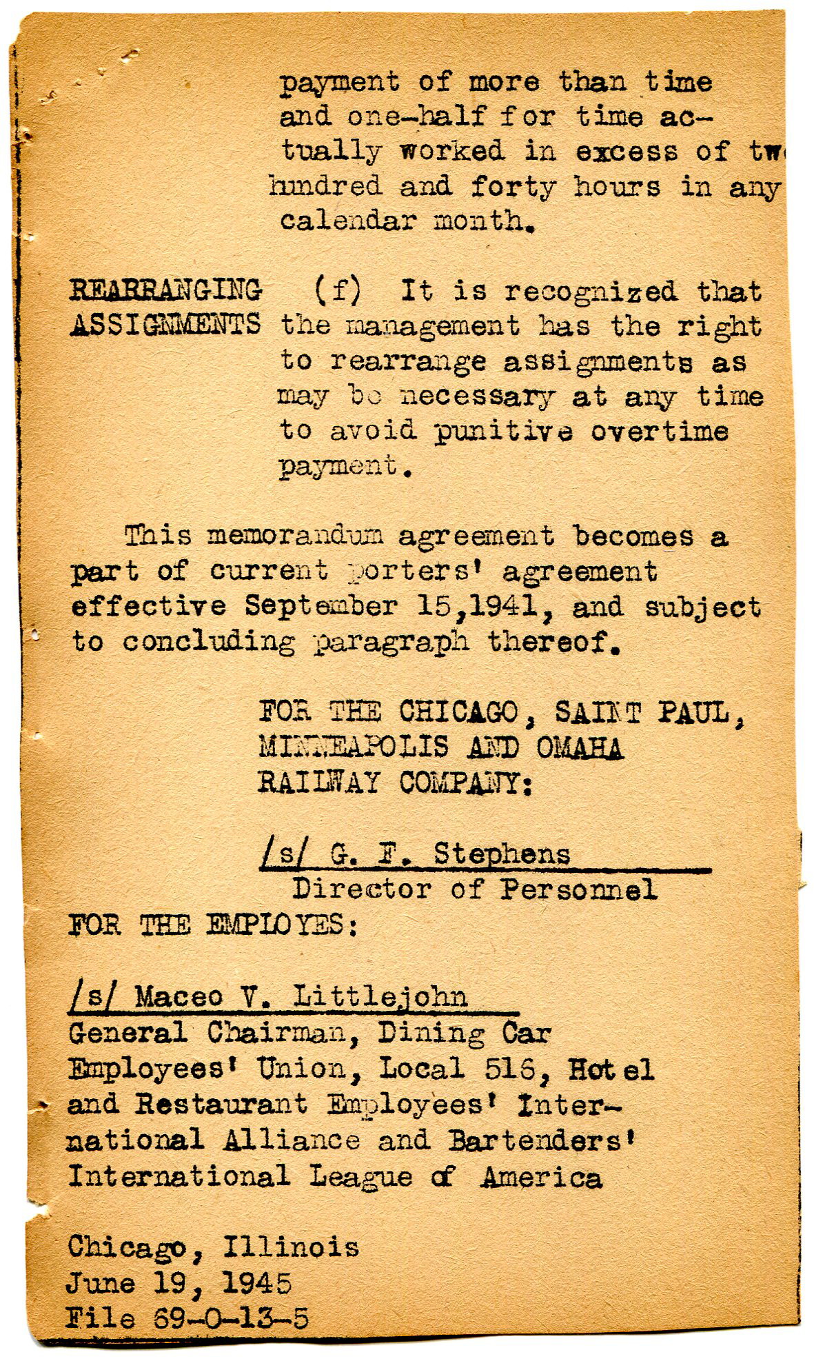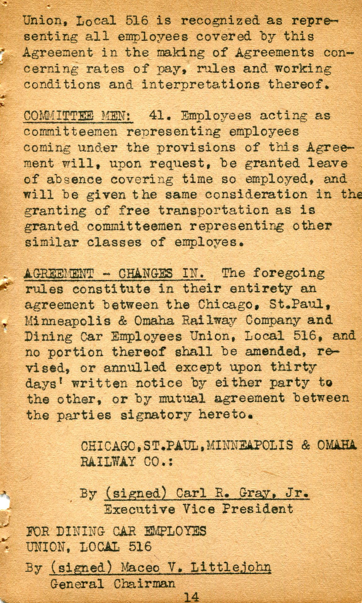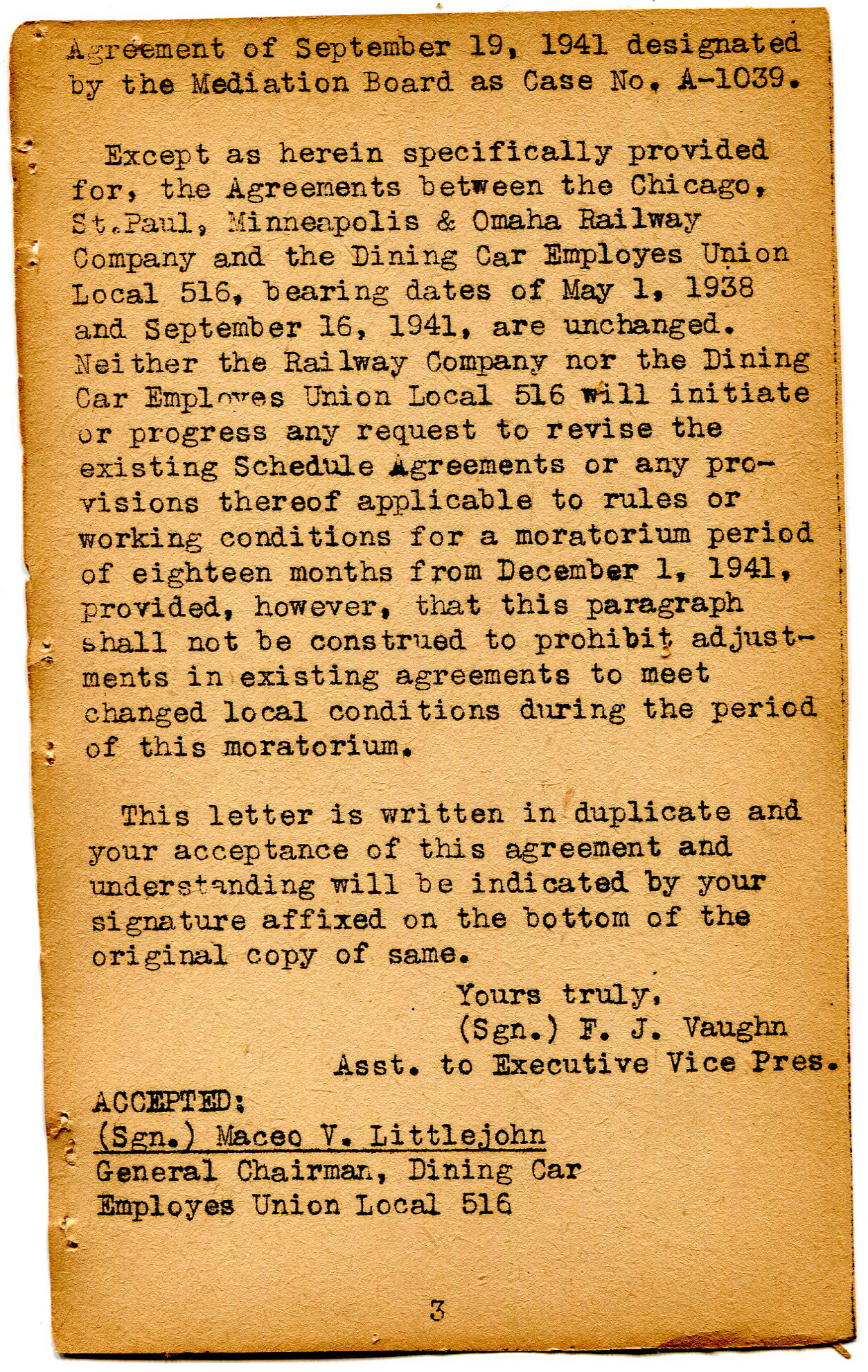 Union agreement on Working Conditions, Hours of Service with the Omaha Road of 1941