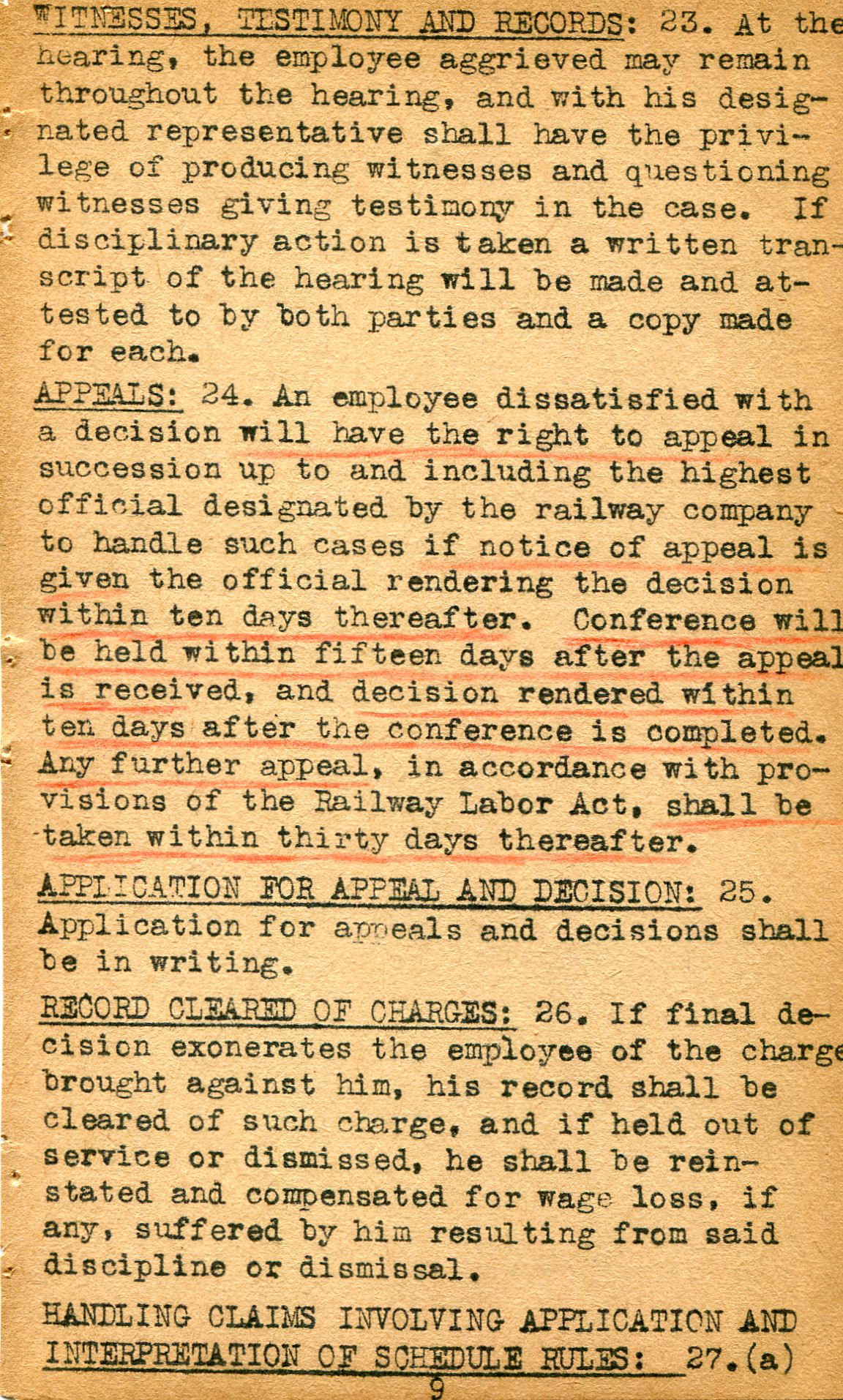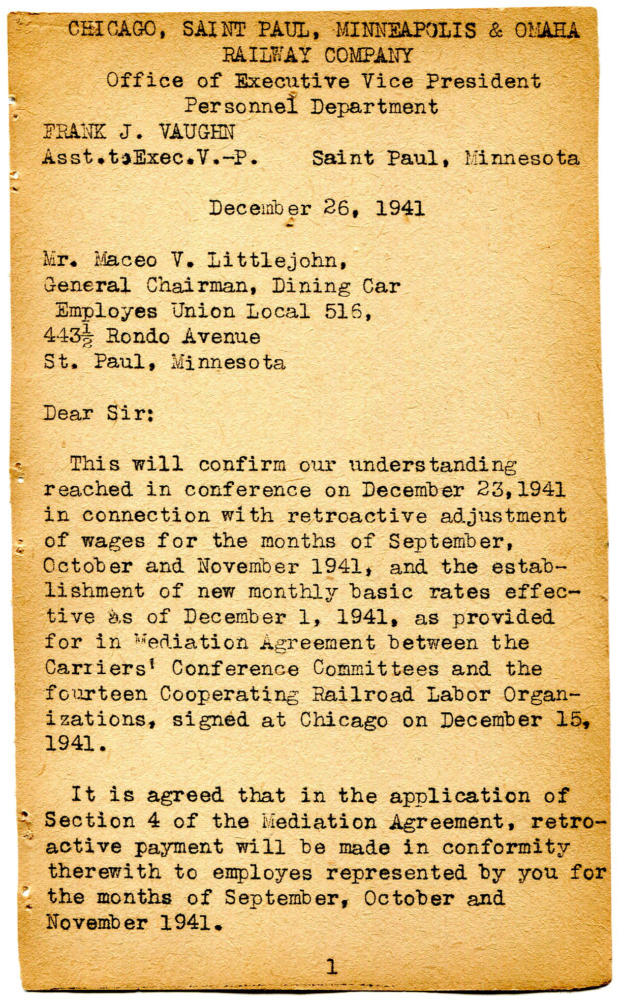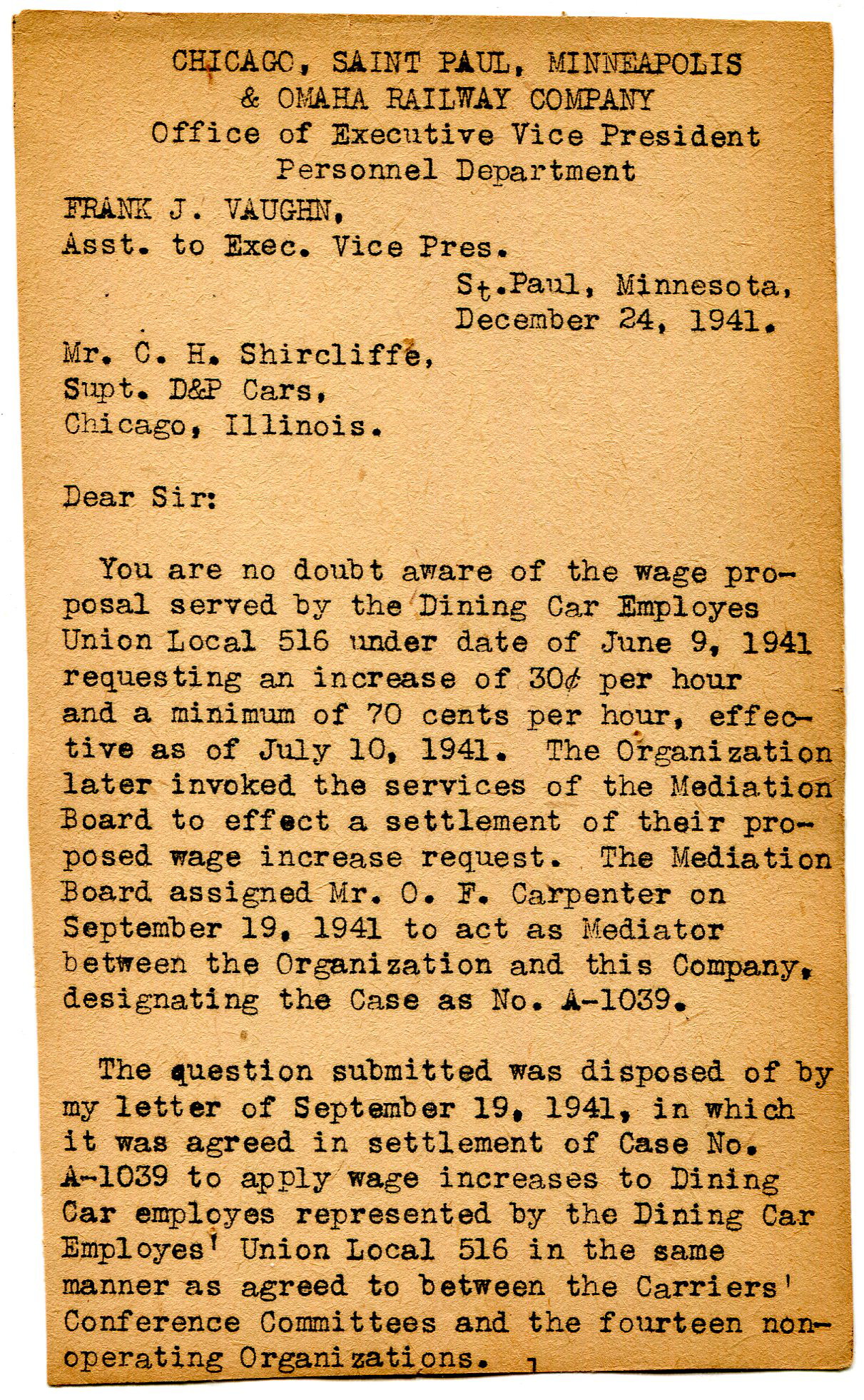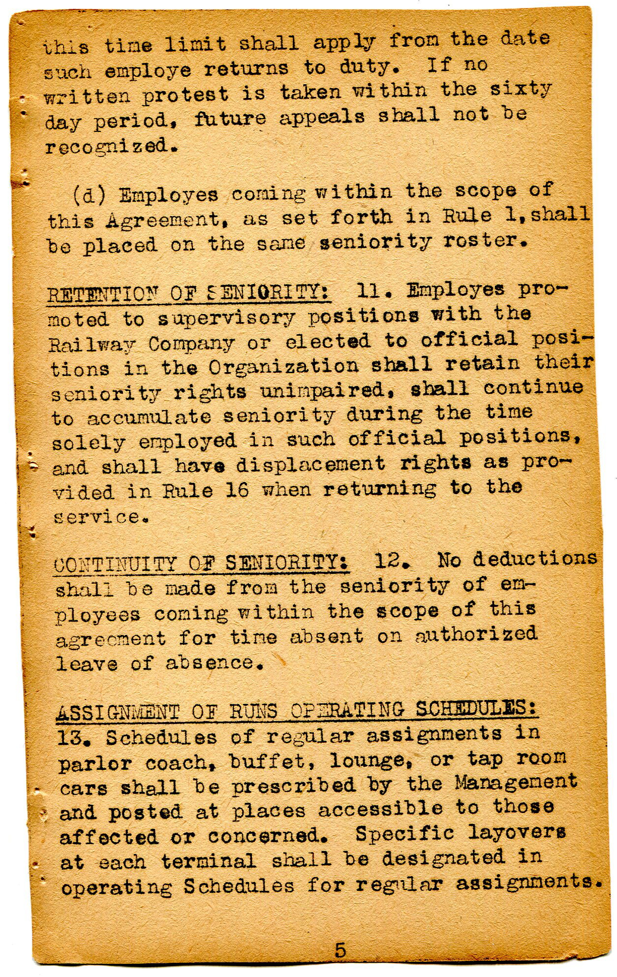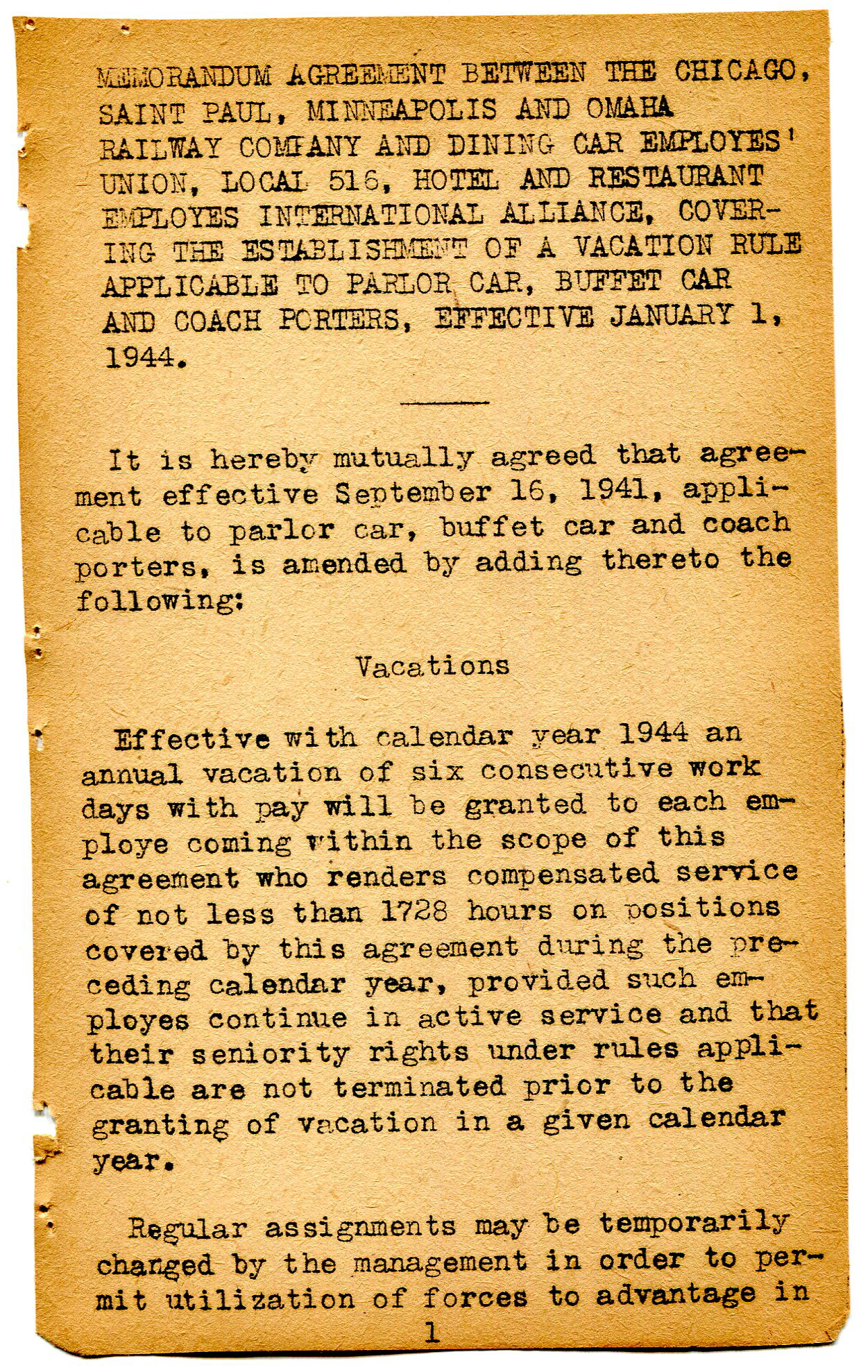 Union agreement on Working Conditions, Hours of Service with the Omaha Road of 1941