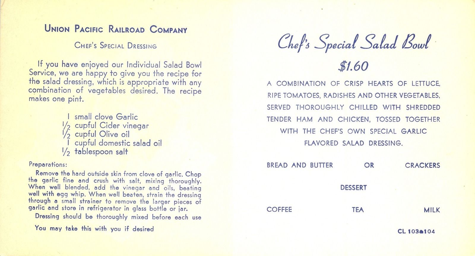 --Union Pacific Magazine / Dining Car Recipes
